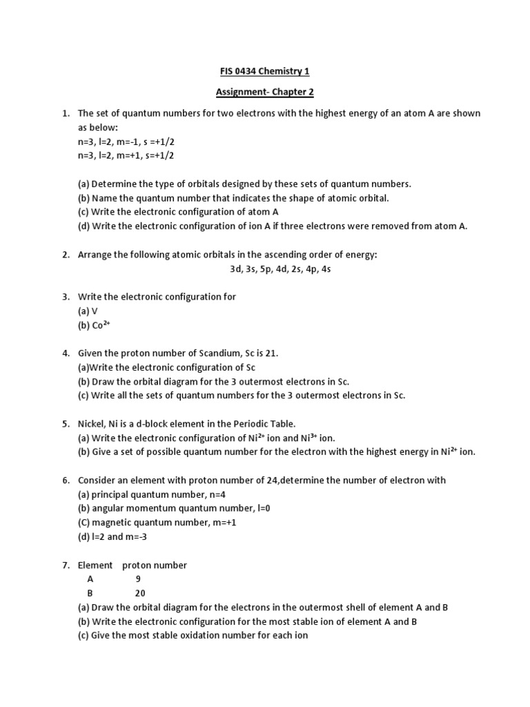 Metallic scandium was produced for the first time in 1937. The first pound of 99% pure scandium metal was produced in 1960. Production of aluminum-scandium alloys began in 1971 following a U.S. patent. Aluminum-scandium alloys were also developed in the USSR. Aug 14, 2020 · The 1s orbital at the bottom of the diagram is the orbital with electrons of lowest energy. The energy increases as we move up to the 2 s and then 2 p , 3 s , and 3 p orbitals, showing that the increasing n value has more influence on energy than the increasing l value for small atoms. The diagram (not to scale) summarises the energies of the orbitals up to the 4p level. The oddity is the position of the 3d orbitals. They are shown at a slightly higher level than the 4s - and so it is the 4s orbital which will fill first, followed by all the 3d orbitals and then the 4p orbitals. Chapter 9 Electrons in Atoms and the Periodic Table. 9.1 True/False Questions. 1) When the elements are arranged in order of increasing number of protons, certain sets of properties recur periodically. 2) The early scientists who developed the quantum-mechanical model were bewildered by the model and it altered our fundamental view of matter.