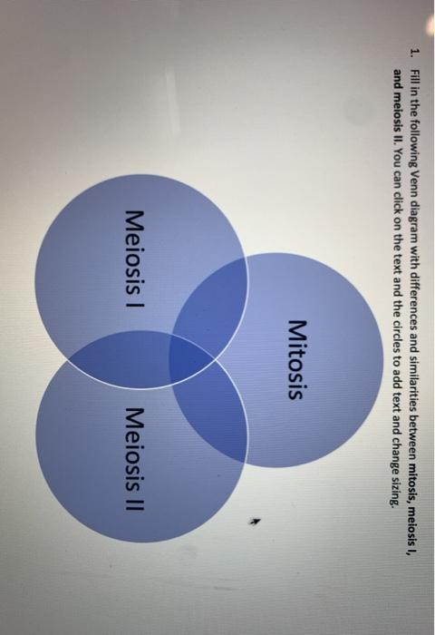 Make A Venn Diagram To Illustrate The Similarities And Difference Of Mitosis And Meiosis Use The Words Phrases Inside The Box And