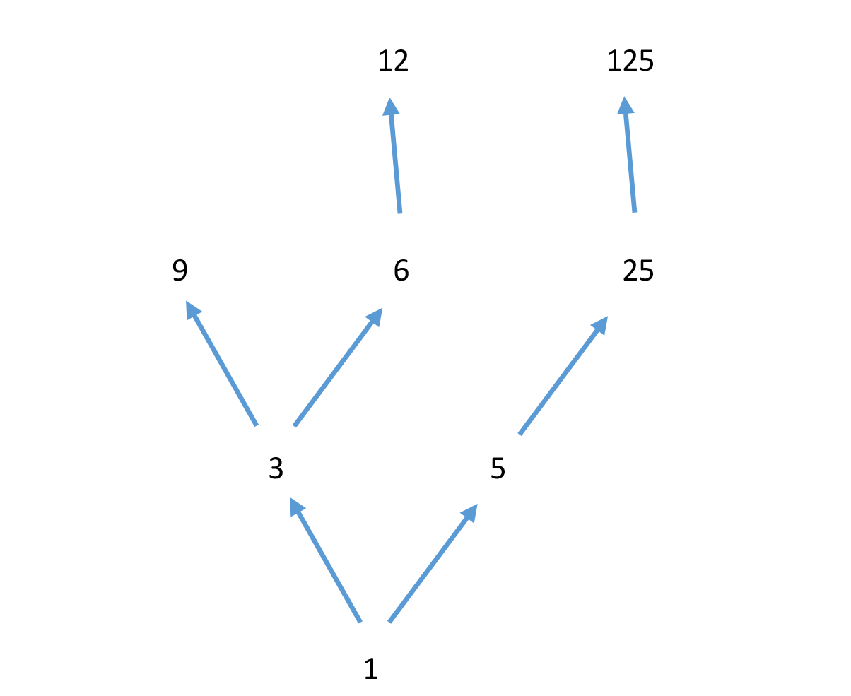 The next step is to find all the different ratios between the divisors as these will be the lines in your Hasse diagram. I start with the highest divisor and work my way down. 1) 1:60 (Nothing is parallel to 1->60, so we will not draw this line in our diagram).