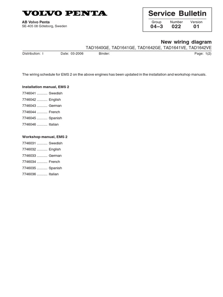 Remove the fuel injection pumps. Mark the pumps to ensure installation in the same cylinders from which they were removed. Take care of the shims. Remove the ...35 pages How to identify a Volvo Penta diesel engine vi Table of Contents 1 Additional access to Parts and Service information If you need a complete listing of parts please see the catalog for the engine you are repairing. The catalogs are available electronically with Volvo Penta’s Electronic Parts Catalog (EPC). The EPC has search tools so that you Oct 24, 2018 · Volvo Penta Exploded view / schematic Fuel Pump and Filter. 2.) Next is a letter that indicates who made the base engine. G = GM F = Ford OS = Volvo Penta's new Ocean Series sterndrives. Baretta Phazer Project - Volvo Penta 5.7 L Engine No Start Troubleshooting.