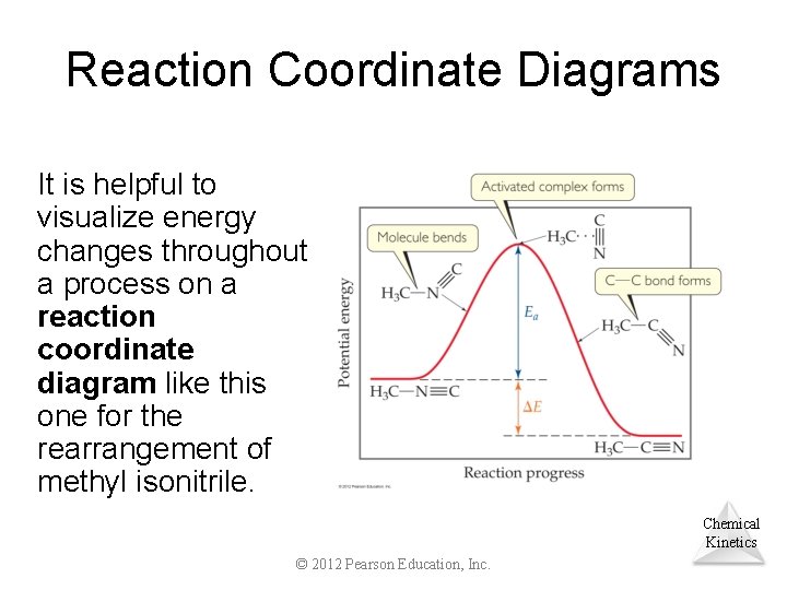 Reactants Products + Energy. Draw a reaction coordinate diagram for this reaction as above but add the activation energy, E a, for the catalyzed reaction on the appropriate curve in this diagram and label it. This is a bit more subtle since .Types of catalysts (article) | Kinetics | Khan AcademySection The Rate of a Reaction ... A reaction coordinate diagram is a graph that plots energy versus reaction progress. The amount of energy that needs to be added is called the activation energy, which is the point where the line ... A general Reaction Coordinate Diagram relating the energy of a system to its geometry along one possible reaction pathway is given in the figure below. In the figure below, the Activation Energy, Ea is that critical minimum energy in a chemical reaction required by reactants to be converted into products. the quantities, Ea; Energy Surfaces vs. Reaction Coordinate Diagrams Something that cannot be represented in the three dimensional energy surface below is the differentially populated vibrational modes of the molecules Reaction coordinate diagrams are used to simplify the situation, they represent a composite