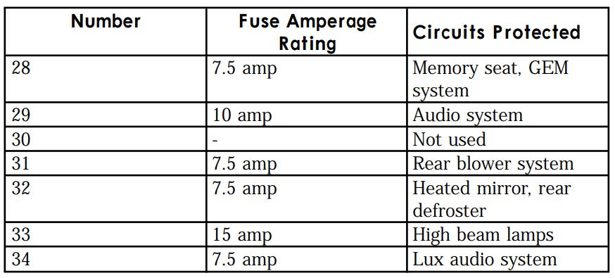 I Have A 1997 Explorer Need The Fuse Panel Diagram To Tell Me What Number Fuse Goes To What Circuit I Want To Check To