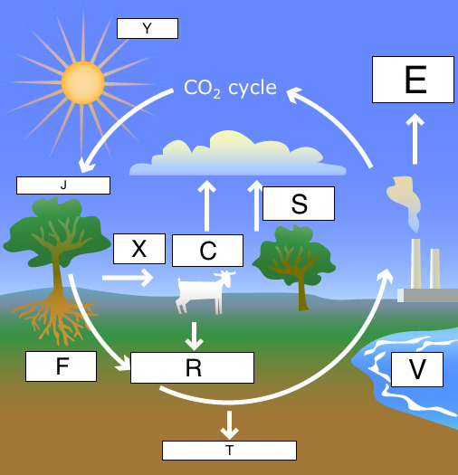 An OHT showing the carbon cycle (Figure 1). A copy of the carbon cycle A4 sheet for each pupil (Figure 1). Either a copy of . Carbon cycle in the lab: carbon products and the processes that link them (for pupils) worksheet for each pupil or an OHT version 1 set of A4 sheets of 'products', (Carbon dioxide in the atmosphere, Carbon in green