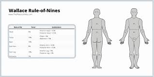 The Rule of Nines determines the percentage of burns which is useful to direct treatment solution choices such as fluid resuscitation and will become a part of the ideas to figure out transport to a burning part. Rules of nines is a strategy of estimating the degree of burn, expressed as a percentage of overall body surface area.