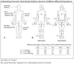 Member feedback about Wallace rule of nines: Divide amount of fluid calculated in qnd by time left until it is 8 hours after burn. Full thickness burn in a black patient. This allows the emergenc The Lund and Browder chart is a tool useful in the management of burns for estimating the total body surface area affected.