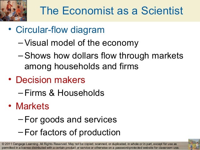 The Scientific Method: Observation, Theory and More Observations The Role of Assumptions: focus our thinking on the essence of the problem we even make the extreme and artificial assumptions Economic Models: omit irrelevant details to see what is truly important a simplicity of the system, used for explaining how it works or calculating what might happen 1. circular-flow diagram: a visual model...
