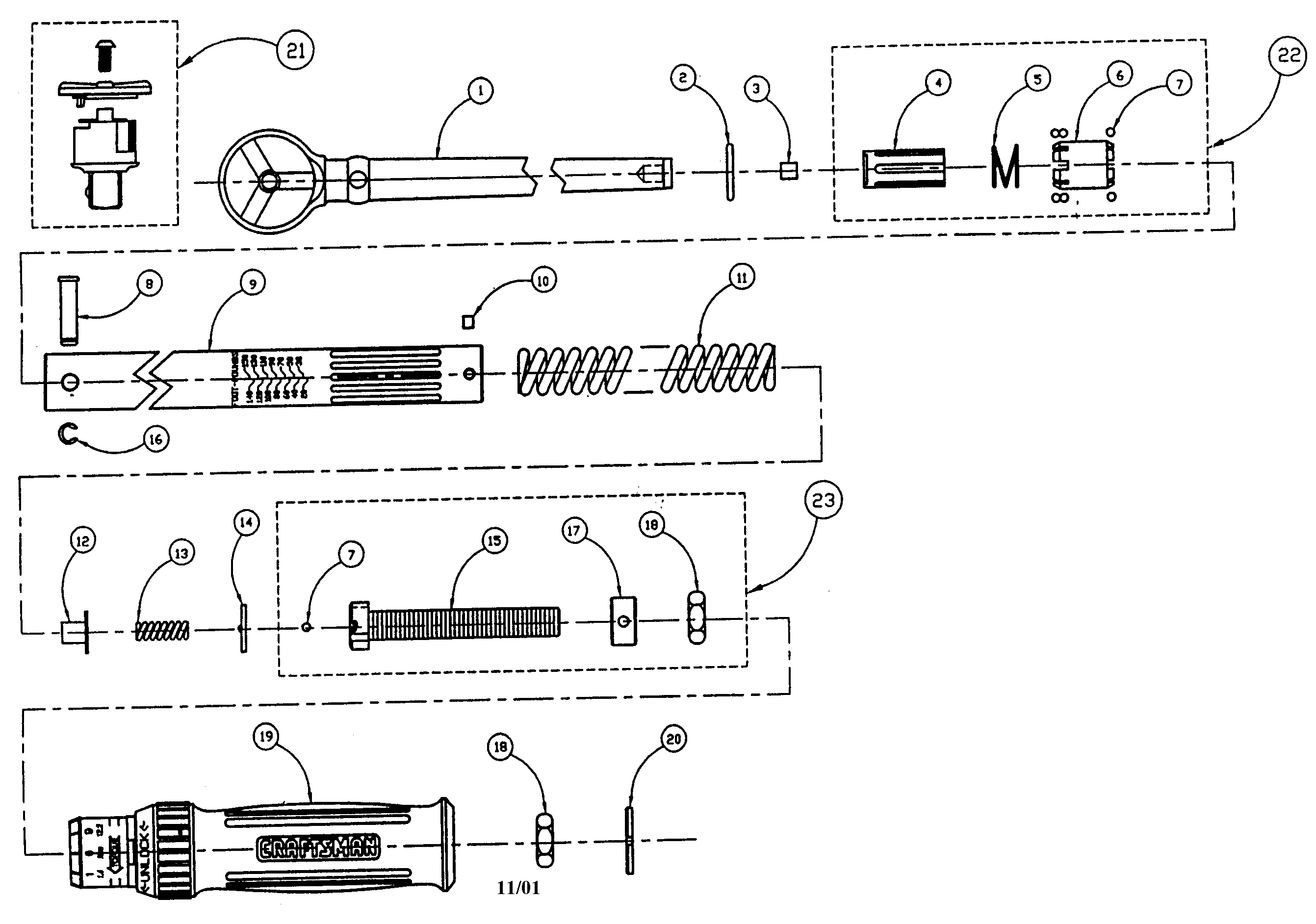 Click a diagram to see the parts shown on that diagram. In the search box below, enter all or part of the part number or the part's name. ... Torque wrench screw. Part #51100-26. The manufacturer no longer makes this part, and there's no substitute part #19. Wrench Diagram. Thrust washer.
