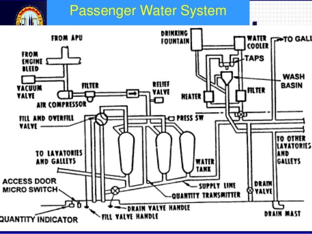 The toilet system servicing is carried out from the waste service panel. The waste water drain-system discharges overboard the waste water from the galley sinks and the lavatory washbasins through heated drain masts. The control and indication of the waste tanks (and potable water tanks) inside the cabin is