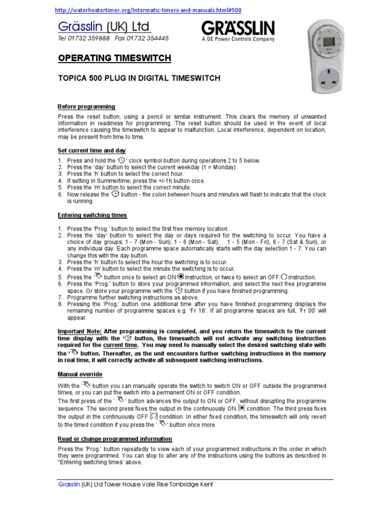 http://waterheatertimer.org/Intermatic-timers-and-manuals.html#Talento-400 Grässlin (UK) Ltd Tel ... CONNECT WIRING IN ACCORDANCE WITH WIRING DIAGRAM.