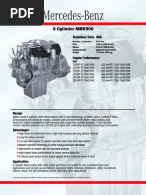 MBE 4000: Detroit Leverages Daimler Engines A Mercedes-Benz-Designed Engine Customized for North American Use. For improved vehicle control and maximum service brake life, the MBE 4000 includes the MBE compression brake and exhaust brake combination as standard features. With the addition of an optional turbo brake, the MBE 4000 provides the most braking horsepower in its class. High torque at ...