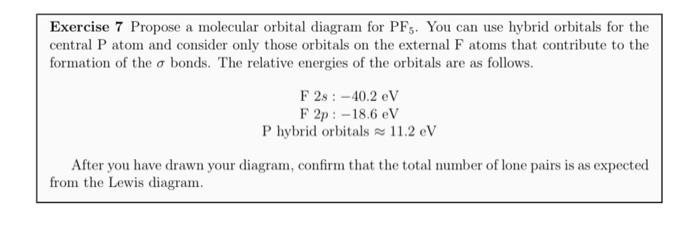 PF5 SF6 elements from the third period on have unfilled d orbitals that can acomodate additional electrons. Case they do not exceed the octet rule. With this model we can draw a series of resonance structures as shown below for PF5. A On your work draw the Lewis structure of phosphorous pentafluoride and label the formal charge of any atom with ... Nov 5, 2013 — bond (VB) theory and molecular orbital (MO) theory. ... This approach has been used successfully to describe the bonding in PF5 (Scheme.4 pages Academia.edu is a platform for academics to share research papers.