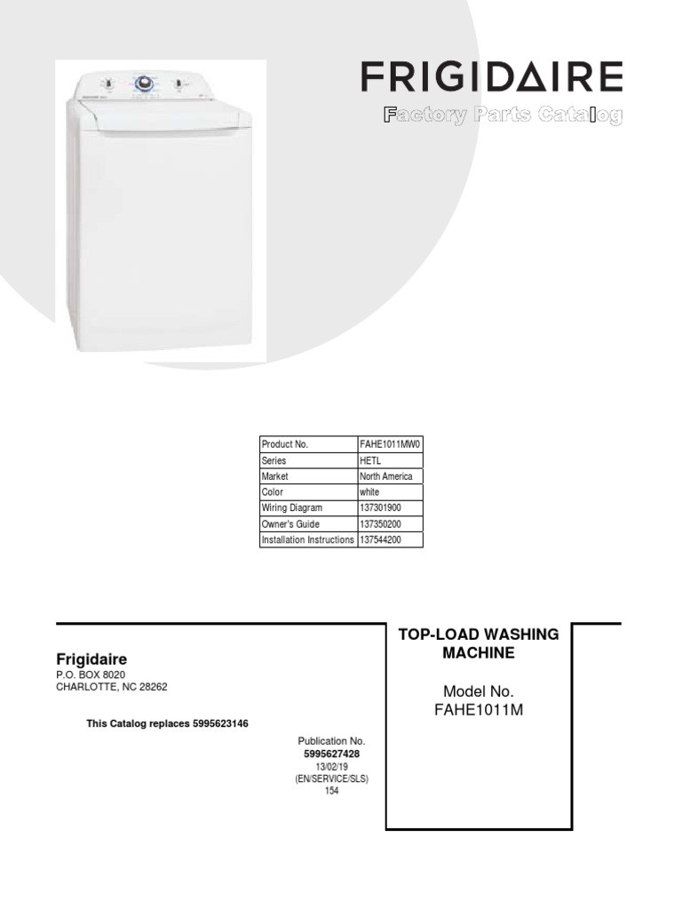 Frigidaire top-load washing machine: model no. fahe1011m | pdf