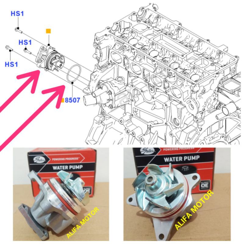 Water Pump-3.0L (4V) Removal and Installation. Drain the engine cooling system. Remove the air cleaner outlet tube. Remove the water pump belt tensioner, if equipped. Disconnect the three hoses. Remove the bolts and the water pump assembly. Separate the water pump from the water pump housing.