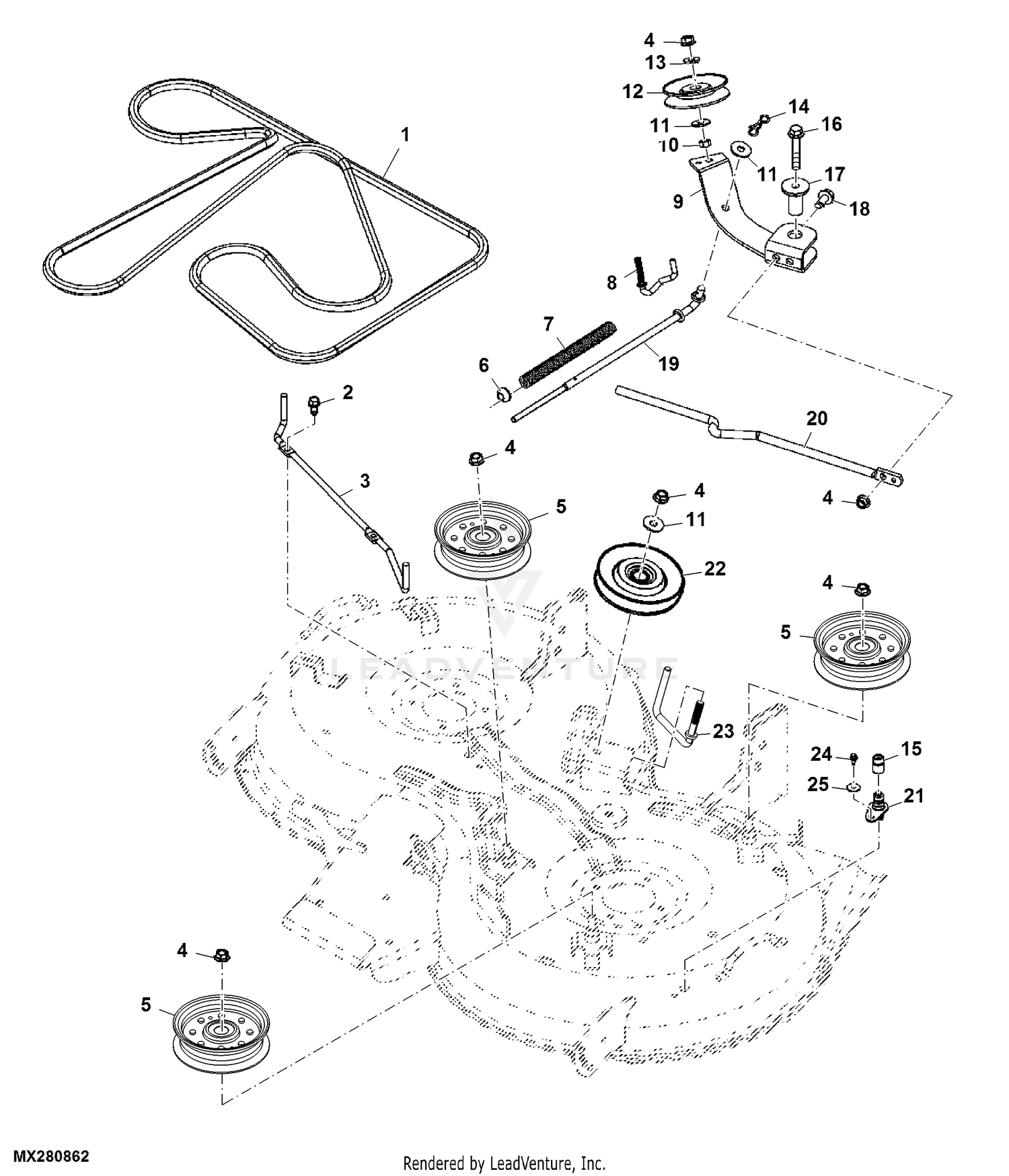 John deere x300 deck belt diagram. This is an overview of a John Deere X300R lawn tractor with hints on how to replace the drive belt (not mower deck belts). I also review various other parts ... John Deere X300 breaking belts. by Mr Mower Man » Thu Apr 19, 2018 7:40 pm . I have a customer who has had an awful time recently with his deck belt on his 42" John Deere X300. I will say this model has one of the sillier looking belt routing designs I've seen. I don't suppose I'm really smart enough to be an engineer, but I still wonder ... John Deere AG, Lawn & Garden and CWP Equipment Parts Search. John Deere parts lookup tool and diagram is an incredible online source. It is a complete catalog that shows you detailed parts diagrams of every part of your machine. This online parts catalog is robust and easy to use. Searching for your John Deere parts online has never been easier. John Deere X300 (42" Edge Deck) Riding Lawn Mower Replacement Belt Original Equipment Manufacturer John Deere OEM Part Number M154621 Machine Riding Lawn Mower Model X300 (42" Edge Deck) Belt Type 4LK/AK Kevlar VBG Replacement Id APPL674196 Technical Specifications: (Inches) (mm) Outside Circumference 146.00 3708.40 Top Width 0.50 12.70 Belt