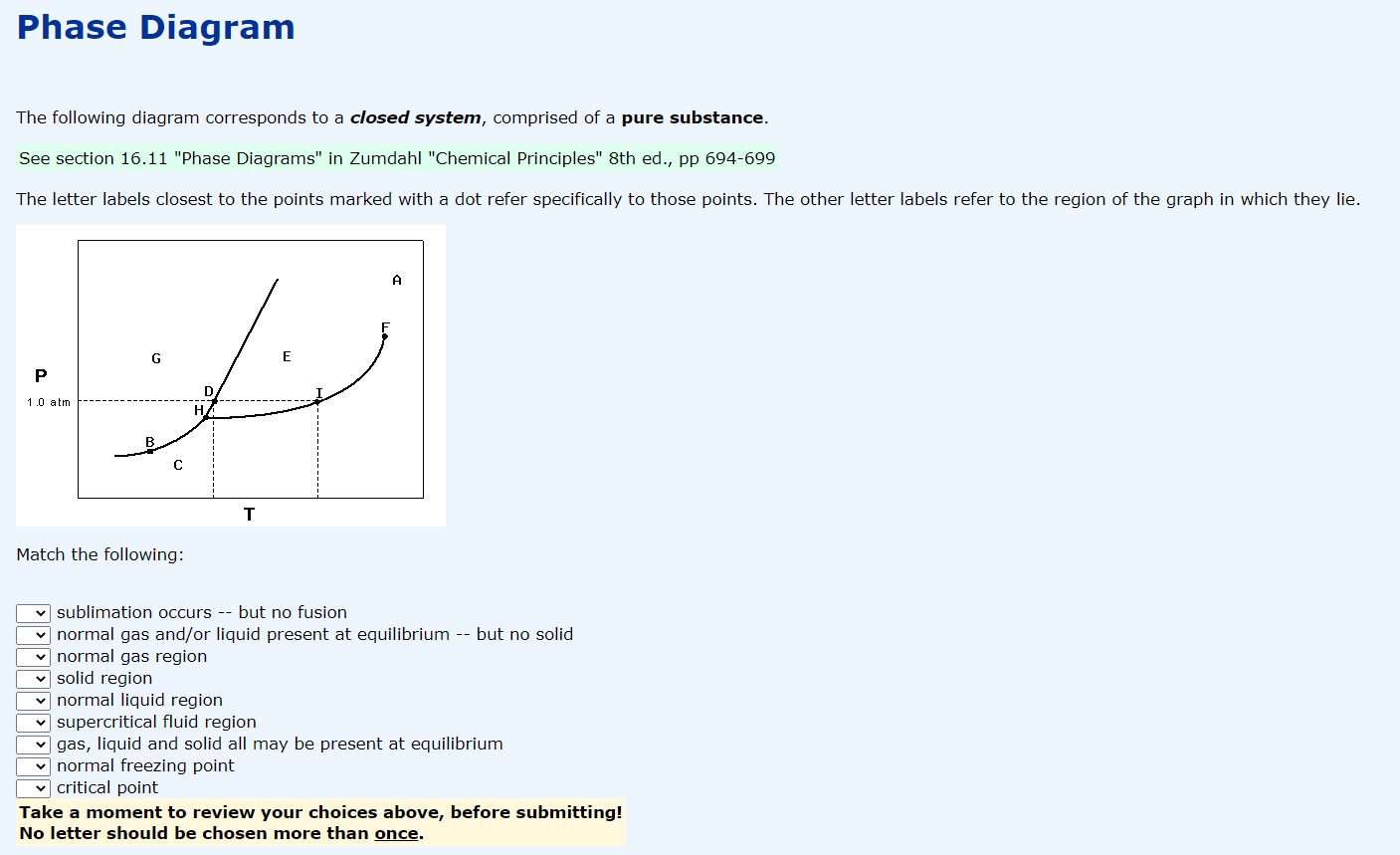 Place the correct labels on the appropriate area of the phase diagram.. Place each label representing a specific electrical event on the appropriate region of the ECG: Ventricular repolarization Click on the region of the ECG image below that aligns with the electrical changes related to atrial repolarization. 1995One such experiment introduces phase diagrams through the use of the Pb / Sn ... by requiring moving labels to appropriate areas , or by pointing to correct ... This resource includes two posters, a labelled heart diagram and a blank diagram that your pupils can label themselves. Challenge your KS2 kids by asking them to write out the correct labels for each part or cut out the already written labels and ask them to place them in the appropriate places to check their understanding.A great science ... Place the correct labels on the appropriate area of the phase diagram. A Deposition B Condensation 1000 100 E c Freezing 10 Solid 0.1 -100 -80.