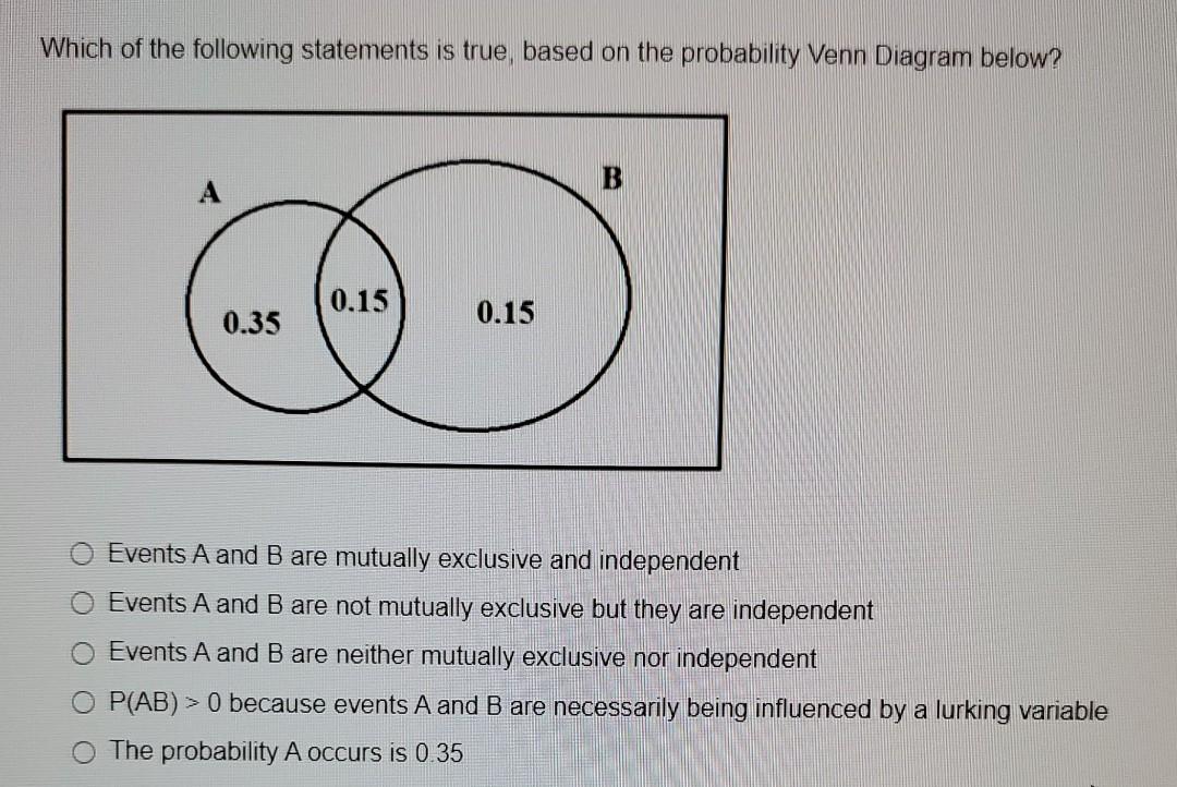 Usually, Venn diagrams are not very useful for illustrating independence, as the sizes of the circles and their intersections have no meaning. It can help t...