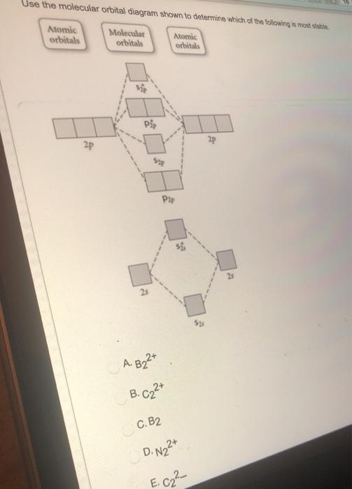 A molecular orbital diagram, or MO diagram, is a qualitative descriptive tool explaining chemical bonding in molecules in terms of molecular orbital theory in general and the linear combination of atomic orbitals (LCAO) method in particular. Molecular orbital diagrams are diagrams of MO energy levels, shown as short horizontal lines in the center, flanked on the sides by constituent AO energy levels for comparison, with the energy levels ranging from low energy at the bottom to high energy at the top. draw the molecular orbital diagram for B2. the number of electrons in the pi2p molecular orbital is. their molecular orbital diagrams are more symmetrical than those of homonuclear diatomic molecules. which of the following statements about nitrogen oxide, NO, is FALSE.