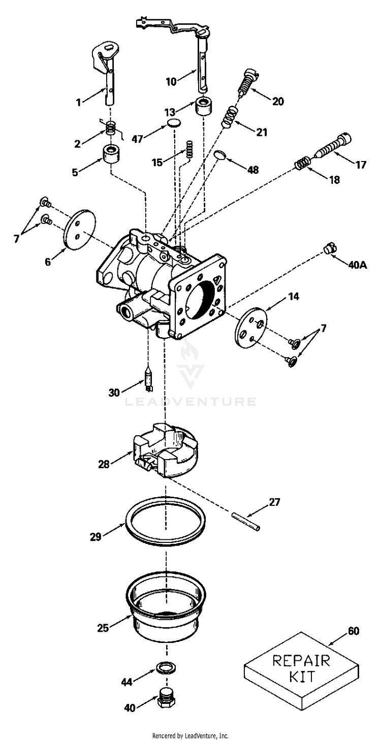 Carburetor. JavaScript Disabled - Unable to show Cart. Parts Lookup - Enter a part number or partial description to search for parts within this model. There are (28) parts used by this model. Found on Diagram: Carburetor. 631615. Shaft And Lever Assembly. $6.80. Options.