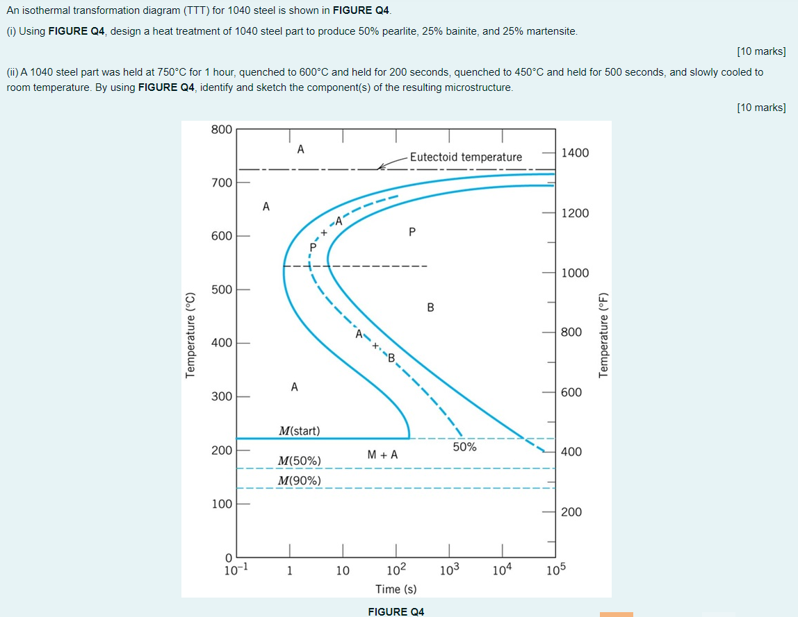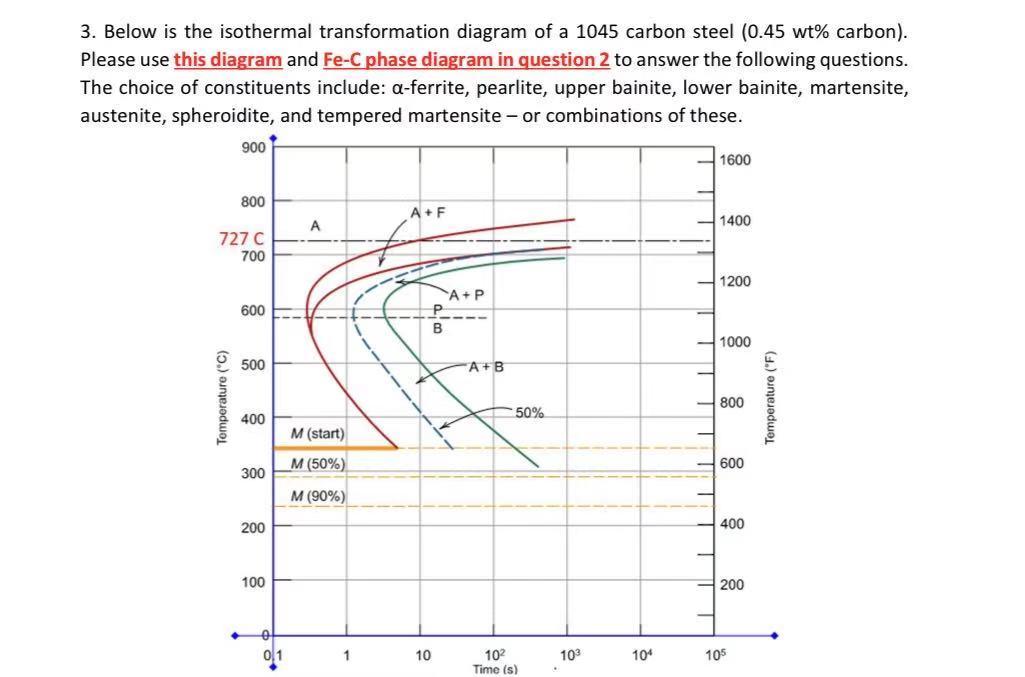 How to read isothermal transformation diagram. It ctt diagram - SlideShare It ctt diagram. 1. ISOTHERMAL TRANSFORMATION DIAGRAM Diagram TTT atau Isothermal Transformation Diagram (I-T diagram) merupakan sebuah diagram yang menghubungkan transformasi austenite terhadap waktu (dalam skala log) dan temperatur. Dalam proses laku panas pada baja, biasanya pemanasan dilakukan hingga mencapaitemperature austenite, kemudian ... PDF Time-Temperature-Transformation (TTT) Curves TTT diagram gives 1- Nature and type of transformation . 2- Rate of transformation. 3- Stability of phases under isothermal transformation conditions. 4- Temperature or time required to start or finish transformation . 5- Qualitative information about size scale of product . 6- Hardness of transformed products. TTT Diagram EXPLAINED|Time Temperature Transformation ... TTT Diagram EXPLAINED|Time Temperature Transformation Diagram/Curves | Engineering Study MaterialsPlease LIKE, Share & SUBSCRIBE This Channel For More EDUCAT... Solved Using the isothermal transformation diagrams (TTT ... Using the isothermal transformation diagrams (TTT diagram) for various compositions of a steel alloy shown below, answer the following questions. In each case, assume that the specimen begins at 920˚C and that it has been held at this temperature long enough to have achieved a complete and homogeneous austenite structure.