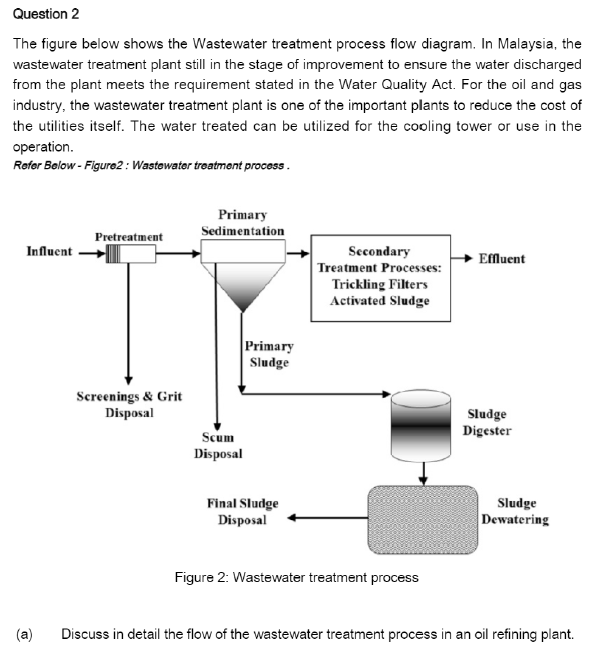 How Sewage treatment plant work explain via diagram How Sewage treatment plant work explain via diagram? There are 5 stages in a wastewater treatment plant: 1). Movement of sludge. The first step is to make sure that the wastewater is well drained into the sewage treatment plant. No matter where it comes from, it must follow the same route. Water Treatment Plant - an overview | ScienceDirect Topics The wastewater treatment plant is designed to treat 250 gpm (56.8 m 3 h −1) of which 66% is recovered by the membrane processes and the rest through the brine evaporator/crystalliser unit (Fig. 5.6).The wastewater flow is generated by make-up RO reject (64%) (from make-up water plant), power block blowdown (22%) and mixed bed regenerate waste (14%). Flow Diagrams of Sewage Treatment Plants | Waste Management The process flow sheet or flow diagram is a graphical representation of the sequence in which various unit operations and unit processes are adopted for treatment of sewage at any sewage treatment plant. Rapid Sand Filters | Water Treatment | Waste Water ... 26-07-2014 · The Rapid Sand Filter (RSF) water treatment equipment differs from the Slow Sand Filter water treatment equipment in a variety of ways, the most important of which are the much greater filtration rate and the ability to clean automatically using back washing. The mechanism of particle removal also differs. Rapid sand Water filter does not use biological filtration and …