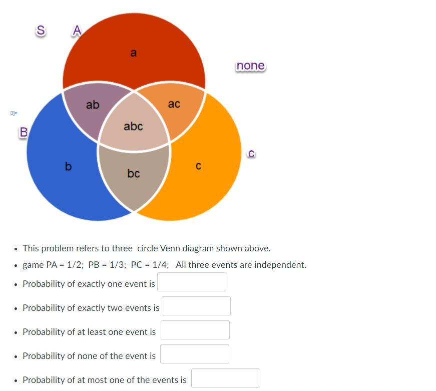 Venn Diagram Word Problems with 3 Circles We can use Venn diagram with 3 circles to represent the above information as shown below. Let us do the following changes in the Venn diagram. We can get the following results from the Venn diagram shown above. Number of elements related only to A is = a - (w + y - z) Number of elements related only to B is = b - (w + x - z)