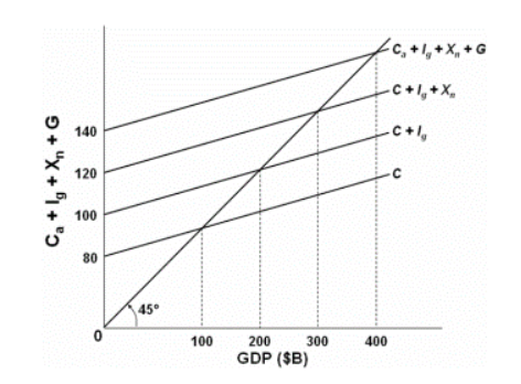 Aggregate Expenditure: Investment, Government Spending ... Graphically, the aggregate expenditure function is formed by adding together (or stacking on top of each other) the consumption function (after taxes), the investment function, the government spending function, and the net export function. In its most basic form, the graph of aggregate expenditures looks like the graph shown in Figure 5. Figure 5.