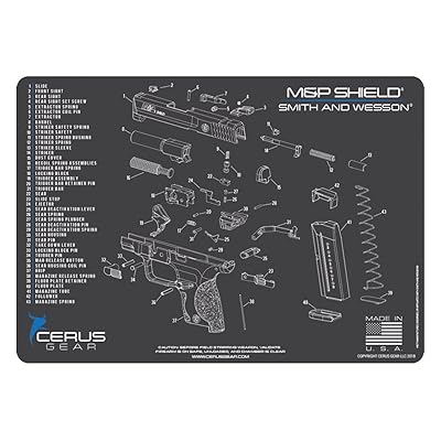 Gun Cleaning Mat for Smith & Wesson M&P Shield - TekMat EASY TO USE - This Smith & Wesson M&P Shield gun cleaning mat comes with an overview of the history of the Smith & Wesson M&P Shield as well as a simple to follow parts diagram of the parts that make up your Smith & Wesson M&P Shield. The Smith & Wesson M&P Shield cleaning mat rolls up for easy storage along with your other cleaning supplies ...