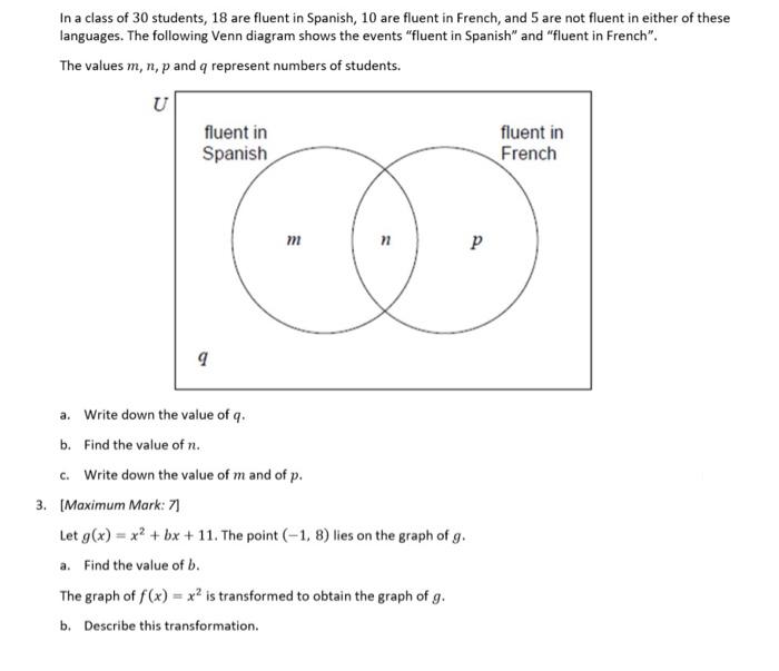Mexico vs. Spain | Editable Venn Diagram Template on Creately Mexico vs. Spain ( Venn Diagram) Use Creately's easy online diagram editor to edit this diagram, collaborate with others and export results to multiple image formats. Edit this Diagram. Boson. We were unable to load the diagram. tap diagram to zoom and pan. You can edit this template and create your own diagram. PDF ∩ ′ ( ∪ )′ ∩ ′ ( ∪ )∩ - WordPress.com VENN DIAGRAM IB QUESTIONS ADVICE: Shading Venn diagrams can help you answer some of the more difficult questions! 1. 160 students attend a dual language school in which the students are taught only in Spanish or taught only in English. A survey was conducted in order to analyse the number of students studying Biology or Mathematics. The results are shown in the Venn diagram.
