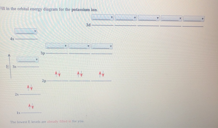 Quantum Number Questions and Answers | Study.com Quantum Number Questions and Answers. Get help with your Quantum number homework. Access the answers to hundreds of Quantum number questions that are explained in a way that's easy for you to ... Answered: What is the likely formula of potassium… | bartleby Solution for What is the likely formula of potassium in the gas phase? Draw a molecular orbital diagram and explain. close. Start your trial now! First week only $4.99! arrow_forward. learn. write. tutor. study resourcesexpand_more. Study Resources. We've got the study and writing resources you need for your assignments. Start exploring! ... Orbital Diagram of All Elements (Diagrams given Inside) Orbital diagrams (Orbital box diagrams) of all elements are mentioned in the chart given below. Free Gift for you: Interactive Periodic Table Let me tell you how this Interactive Periodic Table will help you in your studies. 1). You can effortlessly find every single detail about the elements from this single Interactive Periodic table. 2). Solved Draw the orbital energy diagram for K (potassium ... Draw the orbital energy diagram for K (potassium). Represent electrons as arrows (with up or down spin). What is the core] valence electron configuration? (type in the box below) -45 Energy 2p 2s is *** -T-5 ; Question: Draw the orbital energy diagram for K (potassium). Represent electrons as arrows (with up or down spin).