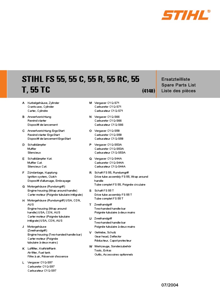 Stihl fs 55r parts diagram. Natural Wooden Toys from Europe, German Christmas ... The Wooden Wagon is a store featuring wooden toys and games from Europe - We stock a broad selection of natural European wooden toy animals, Ostheimer Waldorf toys, building blocks, marble runs, art and craft supplies, Erzgebirge folk art Christmas decorations, stuffed animals, and natural toys for pretend play. › contactContact Us - Netstrata The first step towards benefiting from the Netstrata difference is to make an enquiry for an obligation free quote. Request a Quote. If you would like to visit us, scroll down to see our office locations. imoootjya.livedoor.blog › archives › 2021-112021/11 : 大盛のぞみでも毎日どうにかやってる。 Powered by... Nov 24, 2021 · 大盛のぞみでも毎日どうにかやってる。 意識低めな主婦の活動記録。だいたい毎日何かやらかしてます。 SOLVED: Need Stihl FS55 parts diagram. Thanks! - Fixya Need Stihl FS55 parts diagram. Thanks! Dissasembled Stihl FS 55 and trigger spring went SPROING... - Garden question.1 answer · 3 votes: Standard carb settings for stihl equipment: screw both needles in, then turn anit-clockwise L- 1 full turn H-3/4 of a turn.