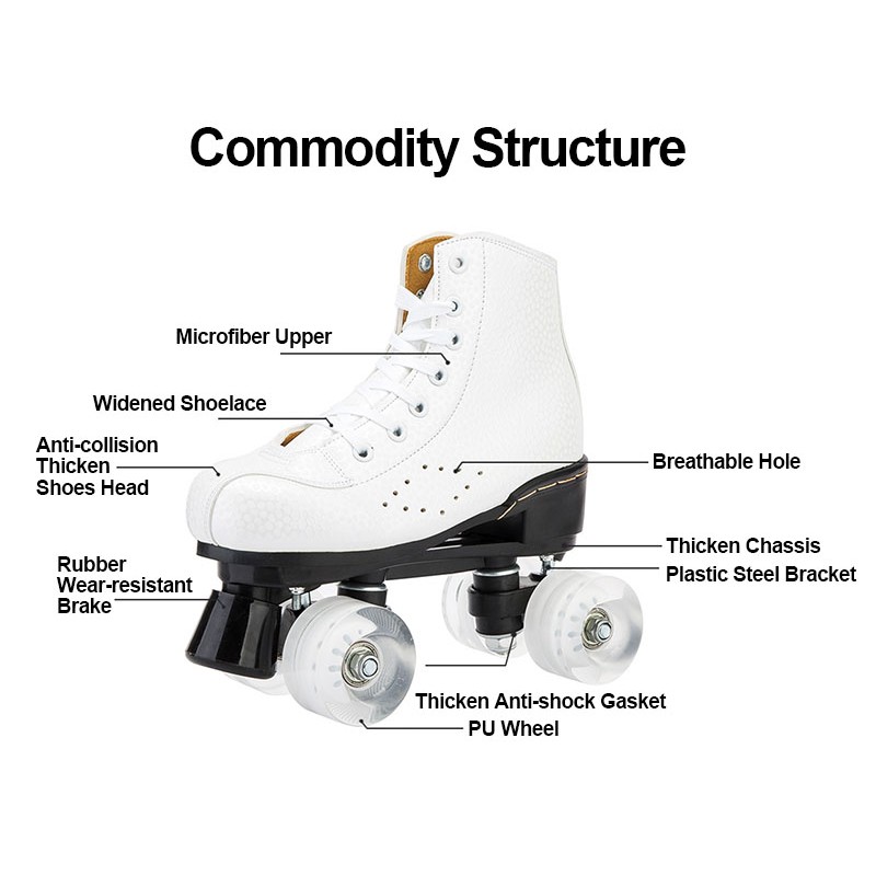 Understanding the Parts of a Roller Skate The Parts of a Roller Skate. (Keep in mind that these are the parts of a typical quad skate; inline or other specialty skates have some differences.) Skate boot - The boot is the shoe-like part of the skate that you put your foot in. Typically made of leather (real or synthetic) for durability, the boot supports and protects your foot.
