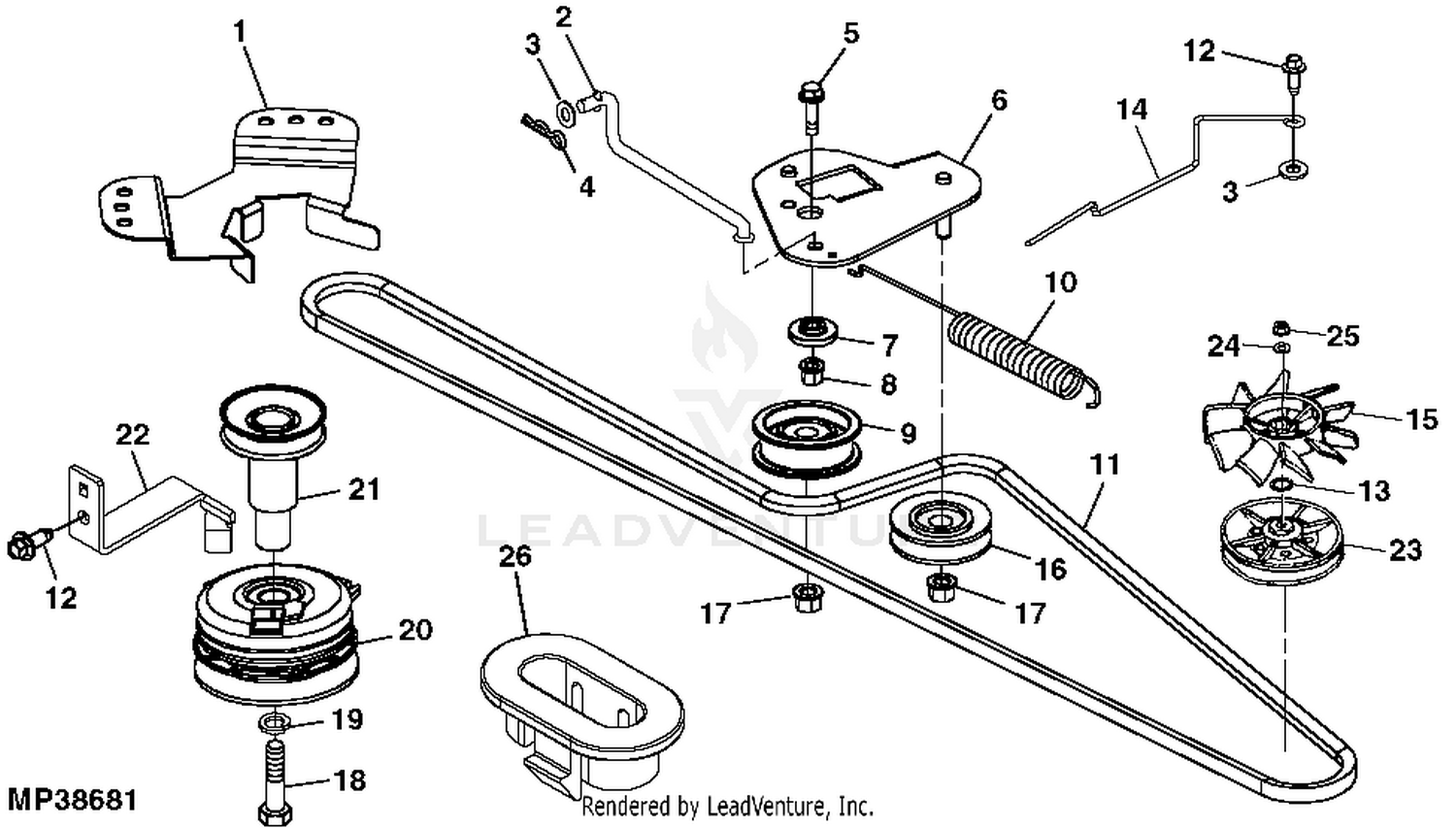 John deere belt diagram for 54 inch 190c - Ask Me Help Desk We have a john deere saber lawn mower 15.5 with a 42 inch deck. Need to replace belt and need a belt diagram to put the new one back on. Can't find any belt diagrams on here. E066 161706M John Deere 1970 110 garden tractor I need the routing diagram and there is only pulley on the mower deck on the right side.