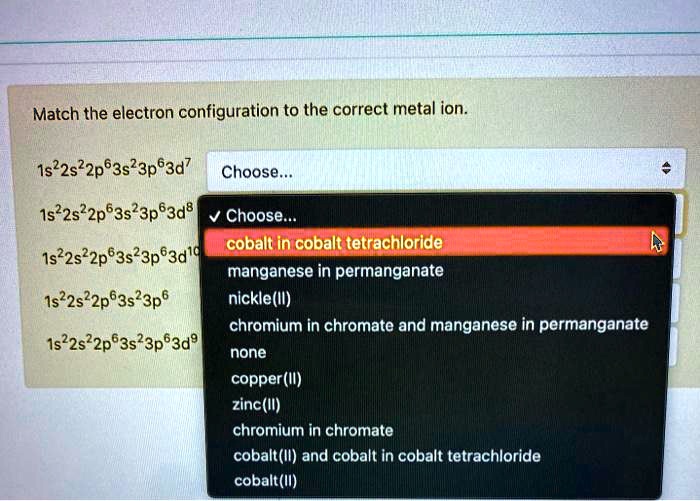 Solved stion 15 Part A Which is the correct orbital ... stion 15 Part A Which is the correct orbital diagram for manganese? 3d Submit Request Answer MW. Answered: What is the correct orbital diagram for… | bartleby Solution for What is the correct orbital diagram for the 3d electrons in Fe? Chemical Bonding Quiz | Chemistry Quiz - Quizizz answer choices. Oxygen bonds randomly with elements in unpredictable ways. Electronegativity differences between the bonding elements allow electrons to be either shared or donated. The difference in atomic radii between the groups accounts for the difference in behavior. PDF Electron Configurations and Orbital Diagrams key The 3p electrons are in three different orbitals and have the same spin. 4. Use the periodic table to identify the neutral atoms having the following electron configurations: Electron Configuration Element [Ne] 3s 2 magnesium [Ar] 4s 2 3d 5 manganese [Kr] 5s 2 4d 10 5p 3 antimony 5. -3Consider the following ions: N , O -2, F -1, Na +1, Mg +2, and Al+3. a.