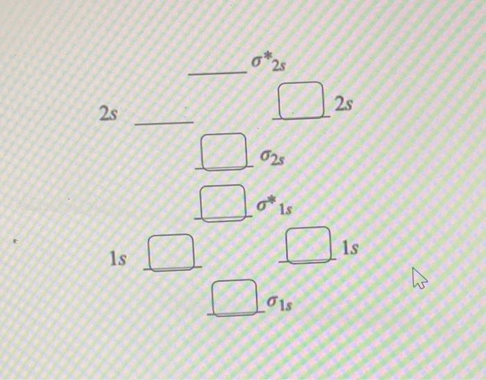 Solved 1)Complete the atomic orbital (AO) and molecular ... See the answer See the answer done loading. 1)Complete the atomic orbital (AO) and molecular orbital (MO) energy diagram for Li2+ and Li2-. Best Answer. This is the best answer based on feedback and ratings. 81% (21 ratings)